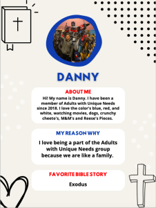 Our Adults with Unique Needs ministry is for those who have intellectual and/or physical disabilities. The group promotes spiritual development, building relationships, and provides opportunities to serve the church and community together.