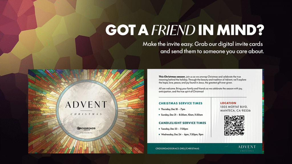 Experience Advent Christmas with us as we slow down, unwrap the season together, and celebrate the hope, love, peace, and joy found in Jesus.